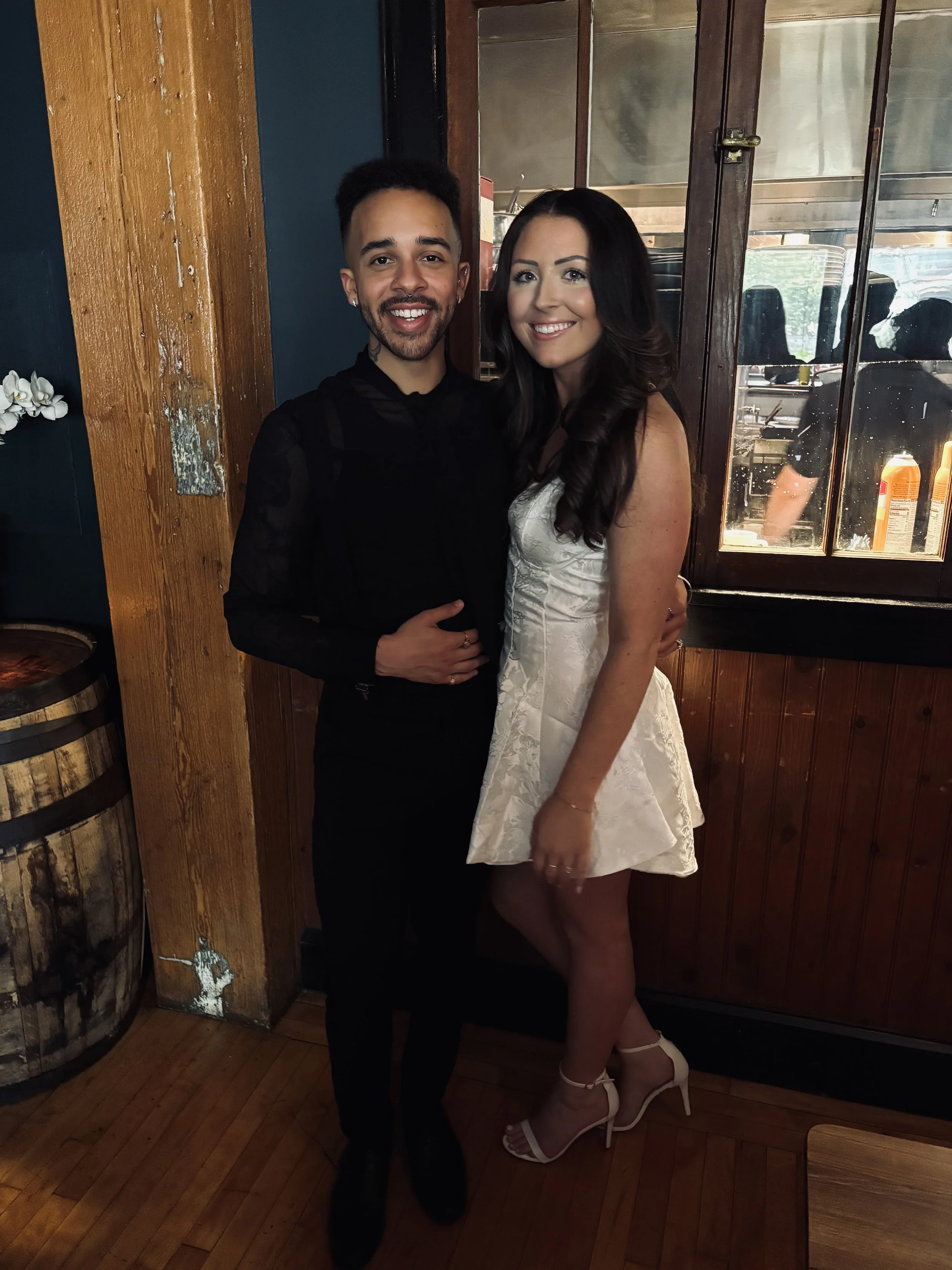Fast forward to June 2024, Dane got down on one knee at a scenic overlook in Pittsburgh, PA. After 6 years together, and 2 living together, Dane somehow pulled off the surprise of a lifetime. For Katey, saying “yes” was the easiest decision she’s ever made. The celebration didn’t stop there. Dane had planned one more surprise: a sky lantern festival, something that had long been on Katey’s bucket list. Surrounded by glowing lanterns in the night sky and later that night celebrating with close friends, it was the perfect way to mark the beginning of their next chapter. Soon after, Katey and Dane bought their first home together—a charming 100-year-old house in the Browncroft neighborhood of Rochester and they couldn’t be happier.
