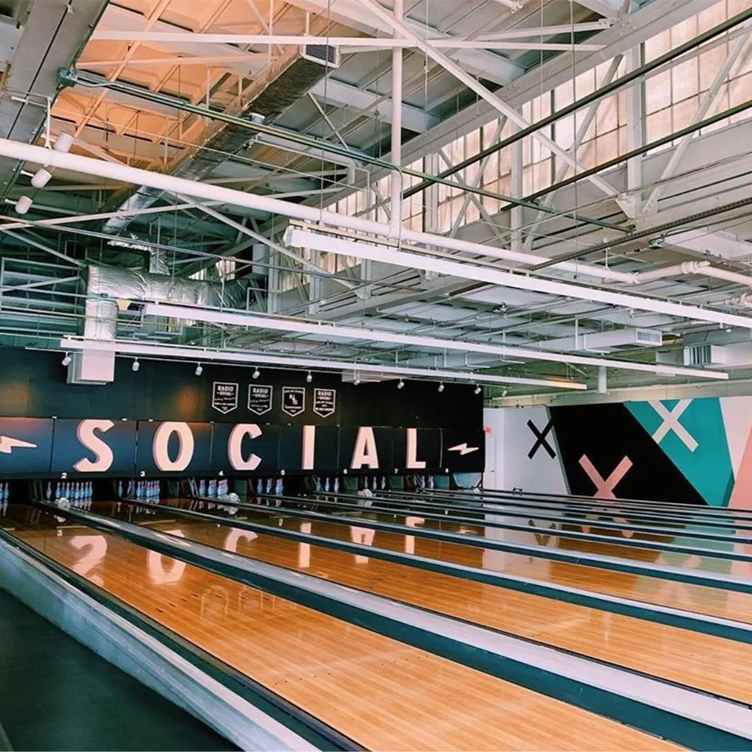 Radio Social is a bowling alley, restaurant, bar, music venue, and social club located in Rochester's historical Stromberg-Carlson warehouse